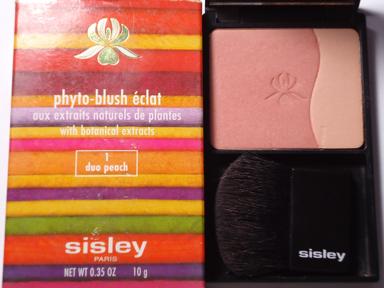 Et comme j'ai pris un "bronzer", un "highlighter", il a fallut que je clôture avec un jolie "blush" et j'ai choisis SISLEY PHYTO BLUSH ECLAT DUO PEACH N°1. Il est composé d'une poudre extra-fine, onctueuse et soyeuse qui permet un maquillage léger, tout en transparence et longue tenue. Comme vous voyez il est composé de deux couleurs, dont la plus claire est un très joli illuminateur de teint, qui donne un effet très glamour au visage.