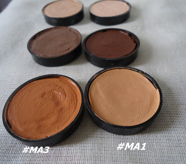 Contouring: 2 couleurs foncées :#MC3 un marron chocolat chaud & #MC1 un bistre avec une nuance brune-grise, les 2 sont parfait pour le contour du visage des peaux foncée, métisses à claires et pour camoufler les imperfections des peaux à couleurs.